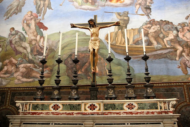 A to vše jsem absolvovala asi jako většina jen proto, abych navštívila Sixtinskou kapli. Fotit se tam pochopitelně nesmělo, zdržovat se tam příliš dlouho taky nebylo povoleno, ale byla jsem tam a užila jsem si tu svoji chvilku v Sixtinské kapli. Zákaz focení vždy respektuji, ale tady, tady jsem cvaknout musela. Sixtinská kaple připomíná Šalamounův chrám ze Starého zákona a je proslulá především díky vnitřní výzdobě, která pochází mimo jiné i od Michelangela. Další zajímavostí je, že se tu pořádají konkláve (shromáždění kardinálů volící papeže).