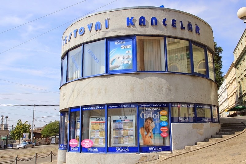Nepřehlédnutelná budova z pera architekta Oskara Pořísky u vlakového nádraží v Brně. Hned naproti České poště. Dříve sloužila návštěvníkům veletrhů jako informační kancelář, dnes v budově sídlí CK Čedok. Funkce tedy byla kupodivu zachována. Dvoupodlažní objekt se zaobleným nárožím připomíná loď. Ve svojí době měla budova největší luxferové okno v Brně. Do dnešní podoby však prošla několika přestavbami. Funkcionalistický styl doplňují kruhová okna.